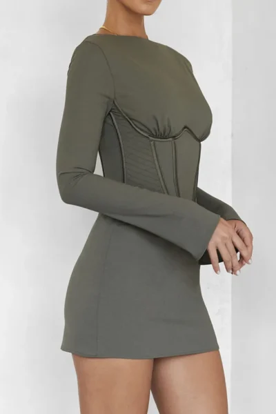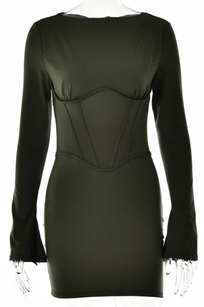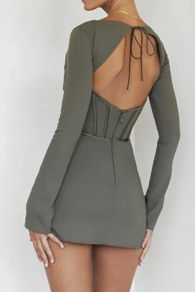 Wine Red V-Neck Mini Dress with Bow Bodycon Style