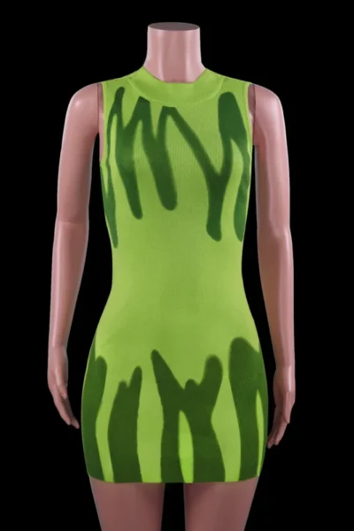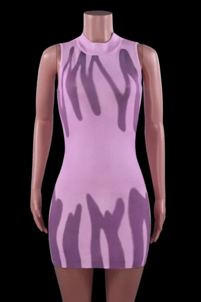 Square Collar Backless Sexy Mini Dress For Women Robe Zipper A-line Contrast Color Sleeveless High Waist Club Dress