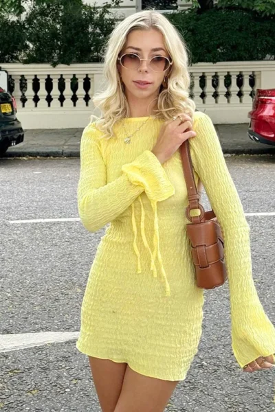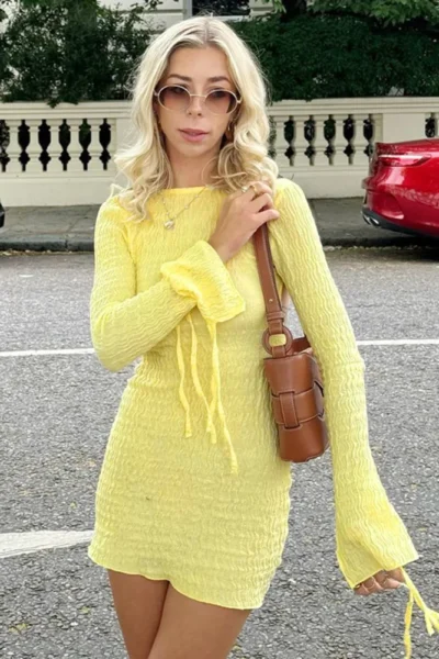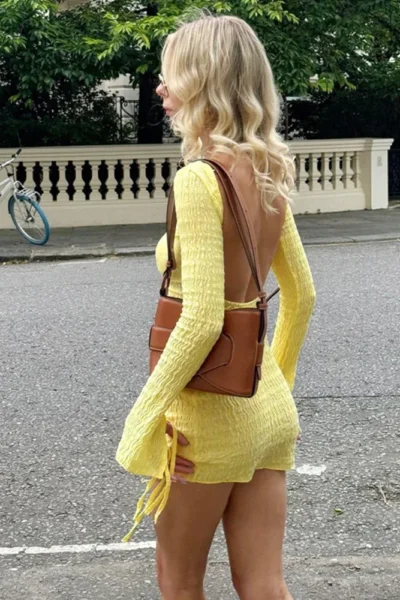 Step into chic sophistication with this elegant backless crumple long sleeve mini dress, designed to make you feel confident and radiant. Perfect for autumn evenings, beachside dinners, or city strolls, it’s a versatile piece that combines timeless elegance with a playful, modern twist.