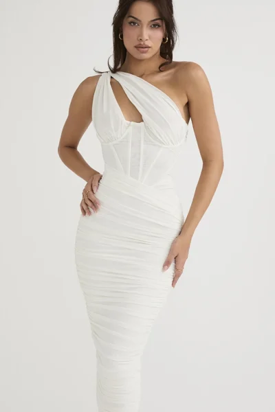 Elegant Off-shoulder Bodycon Maxi Dress Women Two Layer Mesh Fashion Strapless Backless Night Club Party Sexy Dress