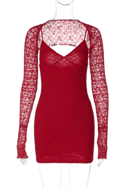 Lace Long Sleeve Sheer Mini Dress for Women Party Night