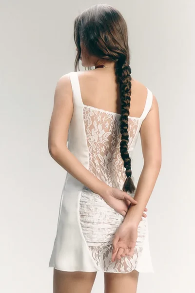 With its fitted silhouette and body-hugging shape, the lace see through mini dress flatters your figure while showcasing its intricate lace pattern. The square neckline frames your décolletage beautifully, while the slim spaghetti straps lend a light, elegant touch. The ruched detailing at the skirt adds texture and creates a flattering effect, making this dress as stylish as it is eye-catching.