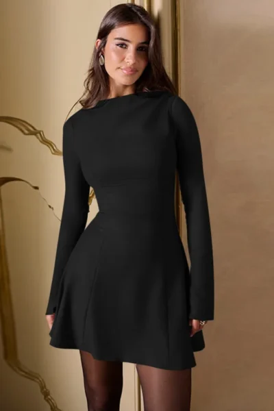 Long sleeve high waist bodycon mini dress for women. Perfect for chic autumn and winter nights. Shop timeless elegance now.