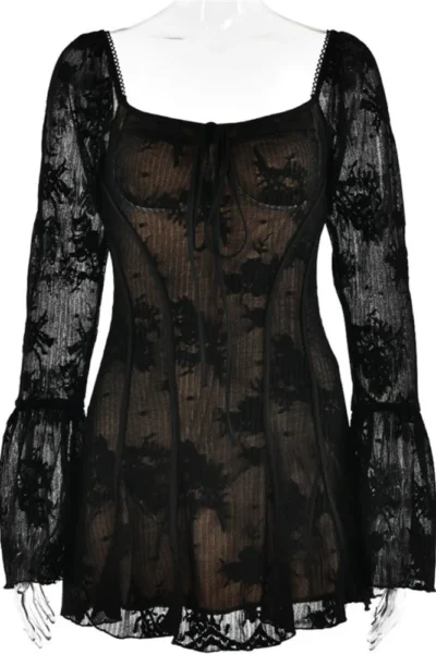 Backless Long Sleeve Knit Mini Dress for Women Beachwear