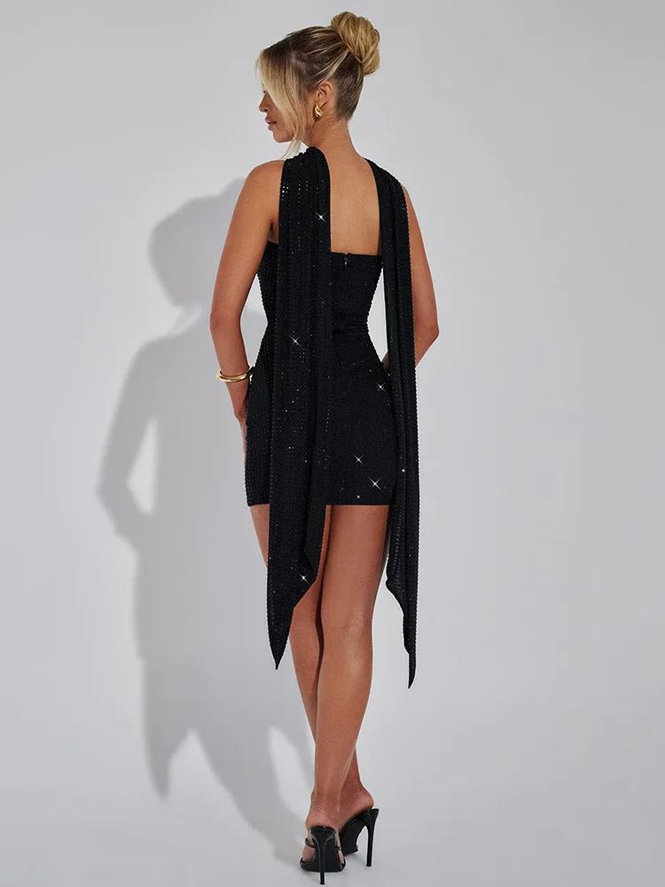 Fashion Sleeveless Sexy Mini Dress For Women Solid Color O Neck Zipper Two Layer Bodycon Club Party Dress Elegant