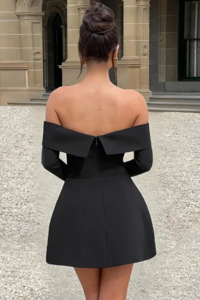 Chic, structured, and undeniably feminine, this off-shoulder long sleeve mini dress is made for evenings that call for effortless elegance. Whether you’re heading to a rooftop event, a fall cocktail party, or a romantic dinner date, this dress makes the perfect statement.