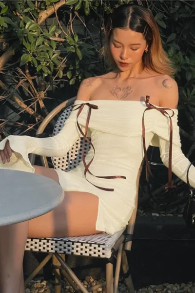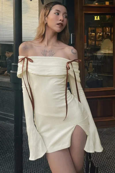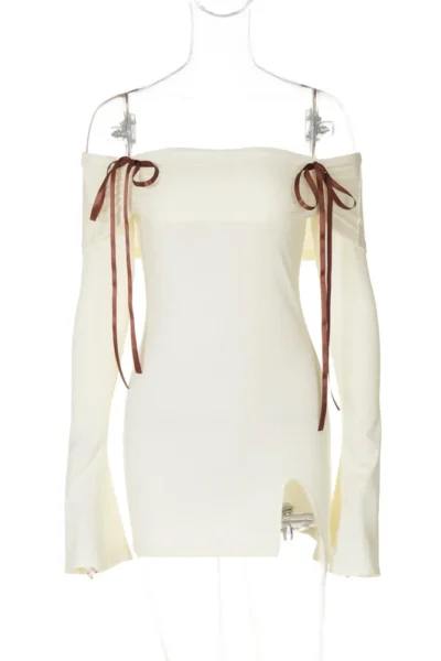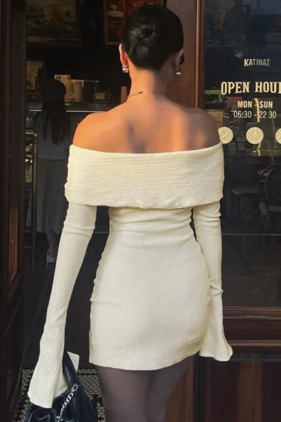 Elegant Off-Shoulder Mini Dress – Chic & Feminine Style