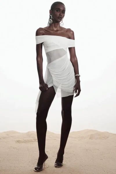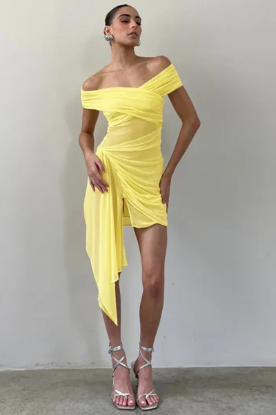 Long Sleeve Draped Ruched Mini Dress for Women Party Night