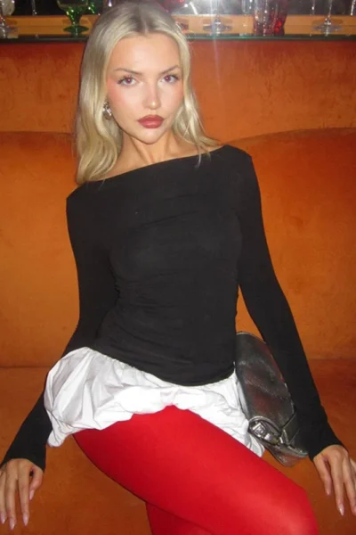Patchwork Long Sleeve Mini Dress with High Waist A-Line