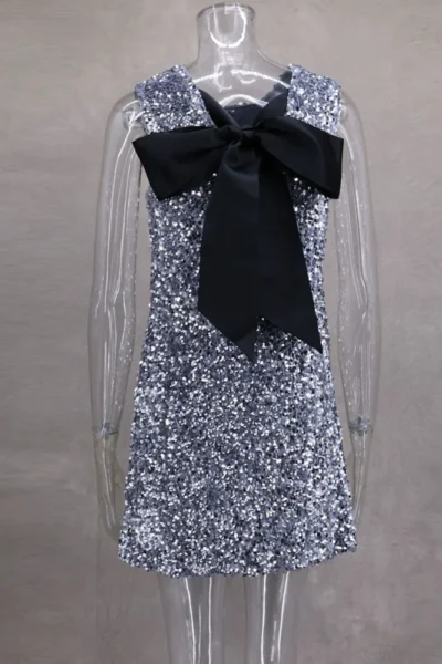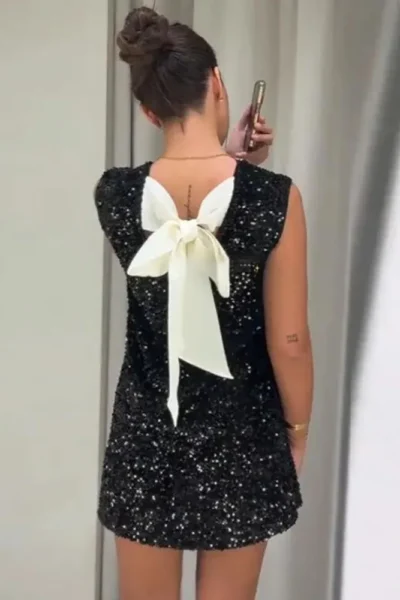 Polka Dot Scarf Collar Backless Mini Dress for Women