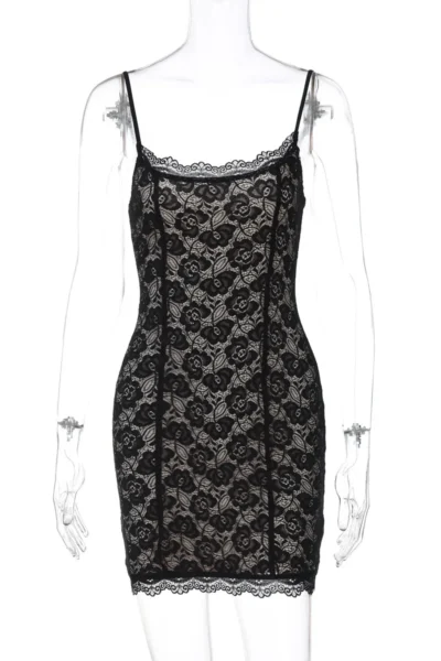 Sexy lace spaghetti strap mini dress with backless floral lace and bodycon fit. Perfect for parties and date nights. Shop now for unforgettable style.