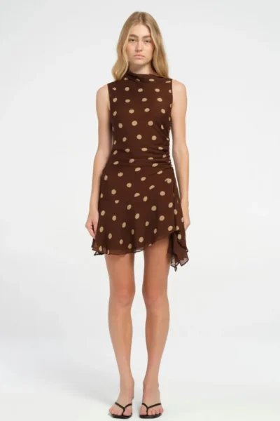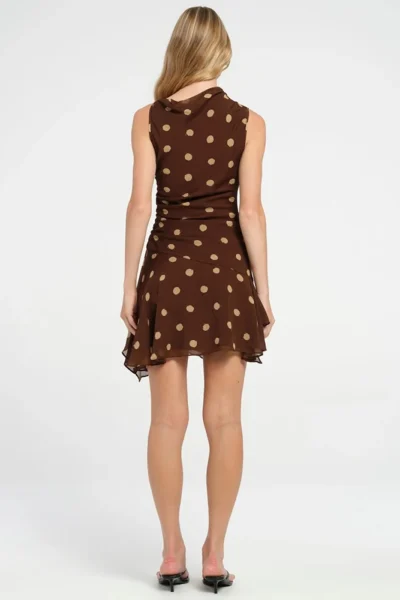 This dress is crafted with attention to detail to ensure a polished finish and a flattering silhouette every time you wear it. The versatile brown polka dot print keeps it classic, making it easy to accessorize for day or night looks.